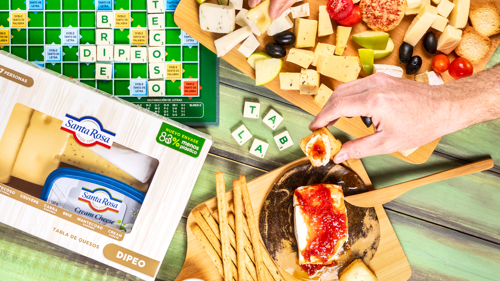 Llega un nuevo integrante de la familia Tablas Santa Rosa, el maridaje perfecto para tus encuentros. La nueva Tabla Dipeo te ofrece seis variedades de quesos cuidadosamente seleccionadas para dipear y compartir un gran momento. La selección incluye los quesos: Mantecoso Tradicional, Gruyére, Cabra Sabores, Brie, Mantecoso Sabores y Cream Cheese.